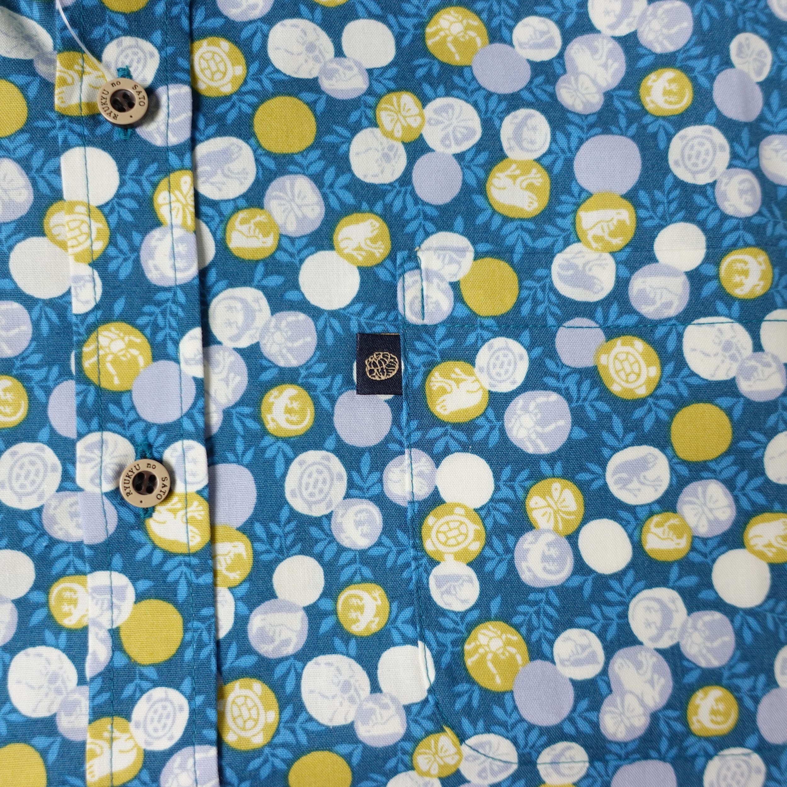 セマルハコガメやヤンバルクイナなど、沖縄らしい生き物たちを小さめに散りばめ、大人でも着やすい落ち着いた雰囲気に仕上げました。