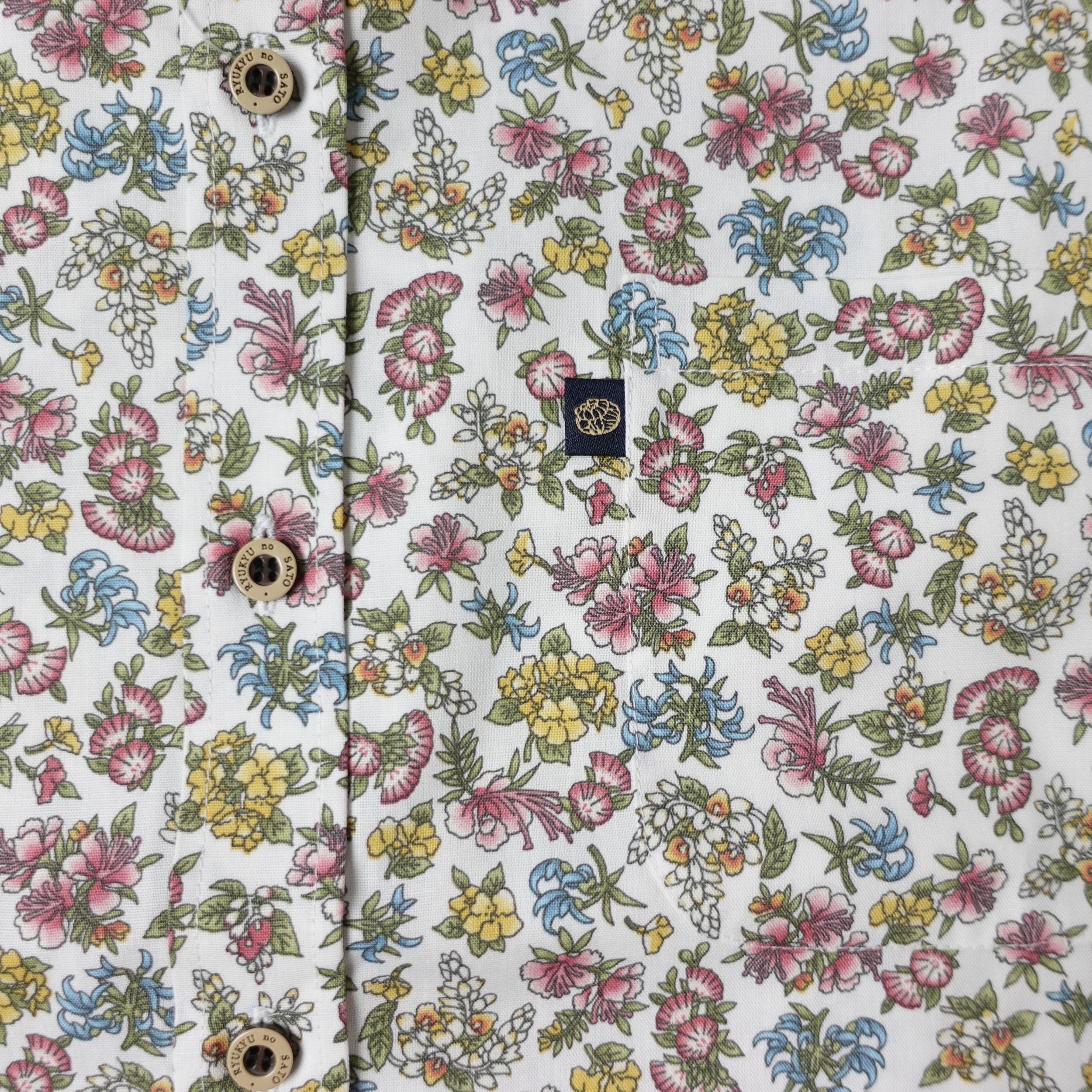 華やかさはありつつも、小柄で控えめなため、幅広いシーンで着やすい仕上がりです。季節を問わず沖縄らしさを楽しめる、やさしい雰囲気の一枚です。